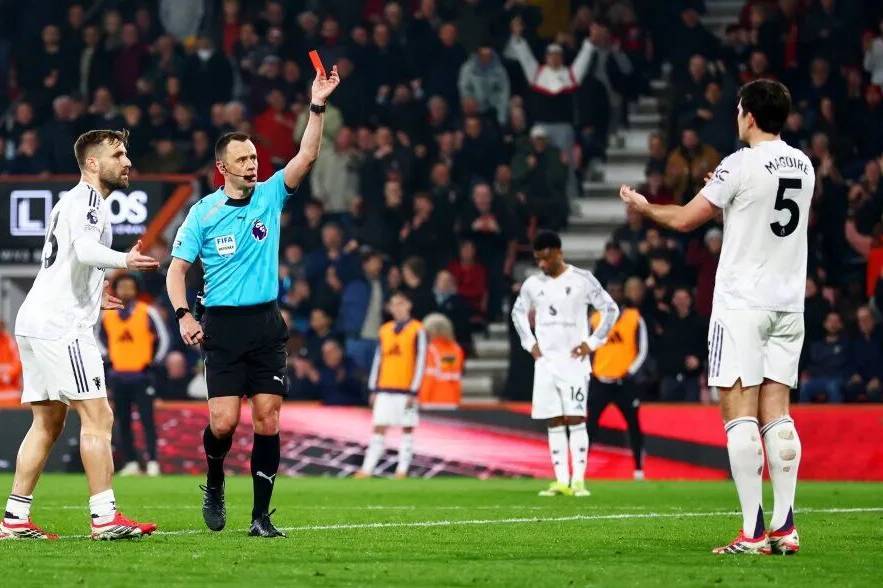 这是马奎尔自2021年11月以来首次被罚下场,他遭遇了在英超的第三次被驱逐,并且将缺席下个月与利兹联的主场比赛。那是三周后的赛事,如果利桑德罗·马丁内斯和德里赫特无法复出,卡里克只能安排莱尼·约罗和埃登·海文这对年轻搭档出场了。